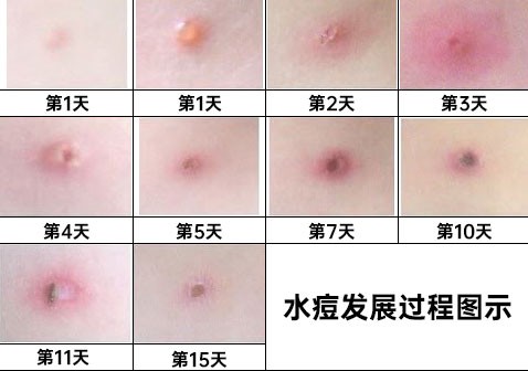新的水疱会分“批次”不断冒出来,同时,较早出现的水疱开始干燥并结痂。