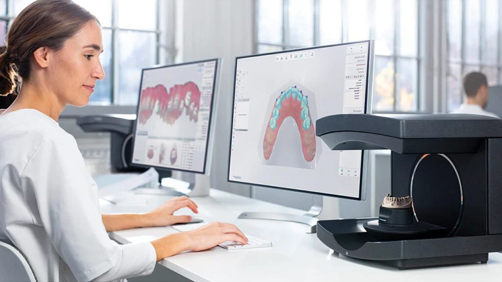 这些数字图像将上传至计算机程序中。牙医将在现场技师协助下,使用 CAD 软件设计和建模牙冠。