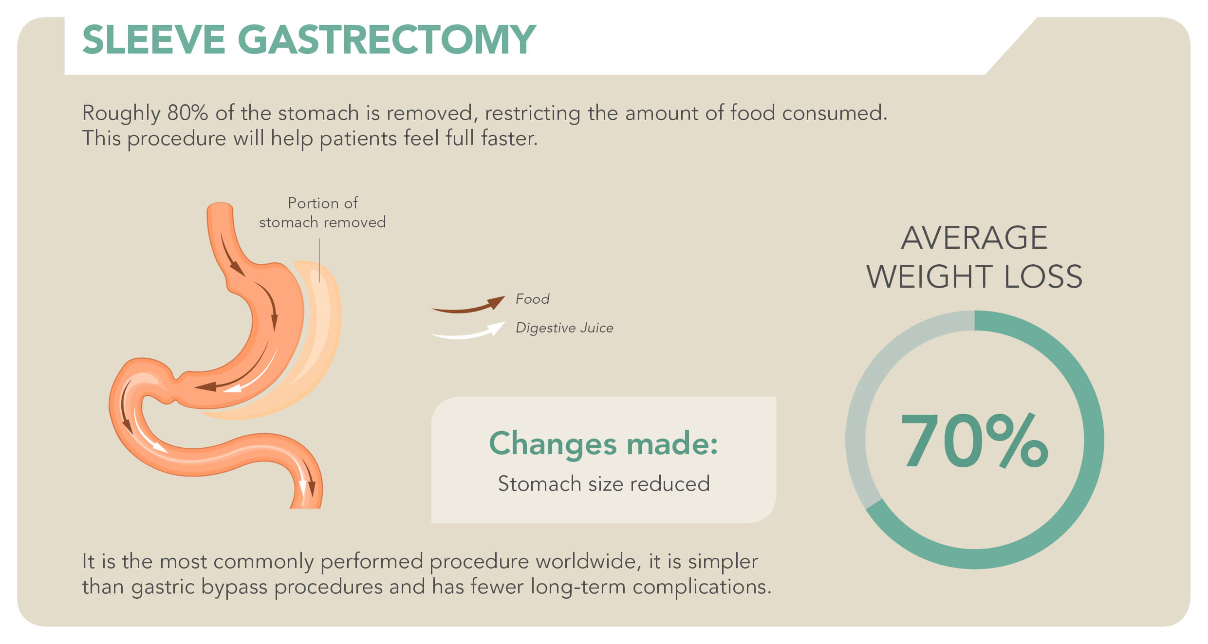 Non-reversible – While there are some cases where gastric bypass procedures have been partially reversed, a sleeve gastrectomy is a permanent choice.