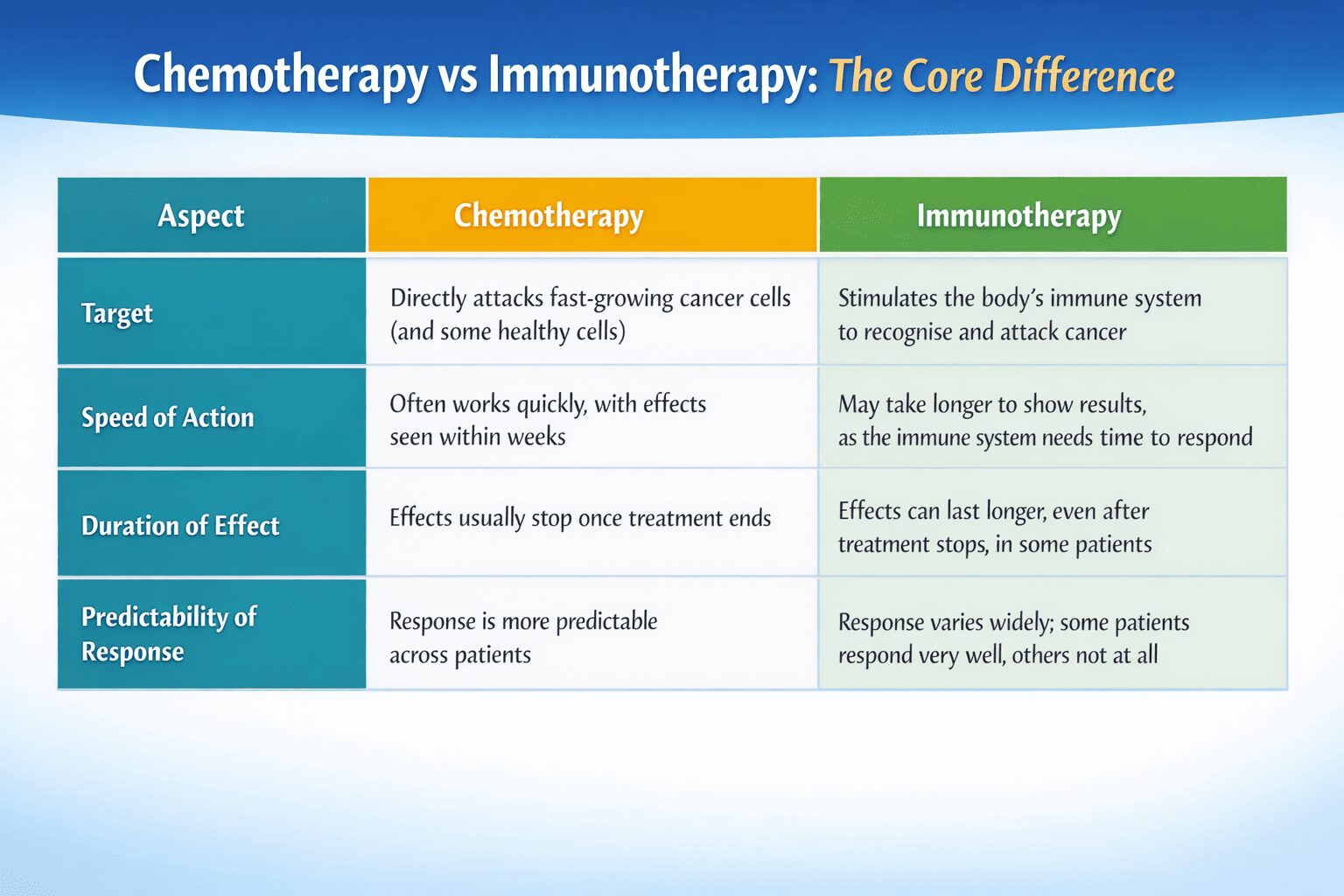 | Prefer seeing it in action? Understand better by watching this short video explaining the core difference between chemotherapy and immunotherapy. |