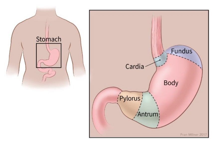 Your stomach is divided into five main sections: