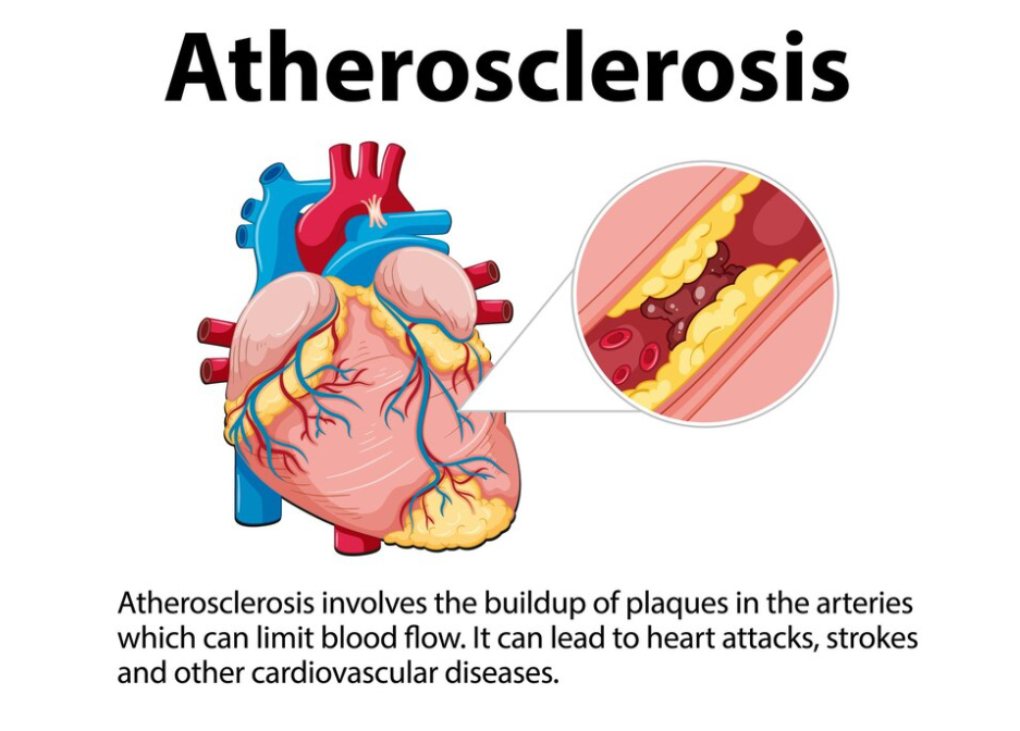 The buildup of plaque, which is made up of fat and cholesterol, inside the artery walls can narrow or block the artery. This condition is known as atherosclerosis.