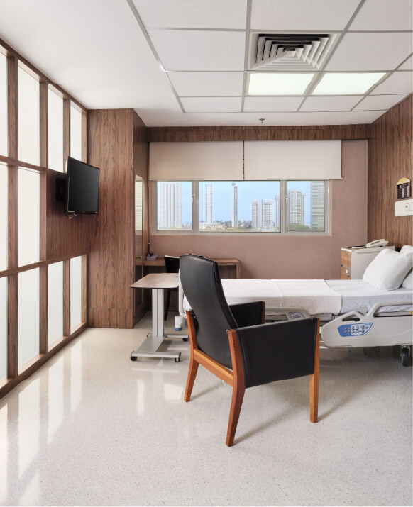 | Room Amenities • Hand Sanitiser • Air Conditioning • Recliner Chair • Satellite TV Channels • Flat-screen TV • Cupboard • Side Board Locker • Cardiac Table | Bath Room • Toilet Paper • Water Heater • Plastic Shower Chair • Hand Soap Dispenser • Urinal Bottle • Washing Bowl |